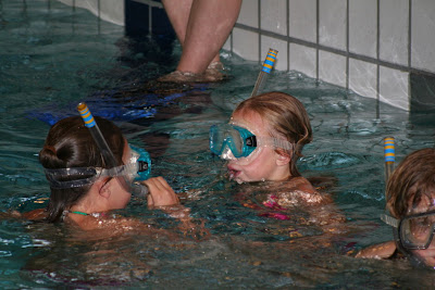 Silke, Nikki en Ella hebben vandaag gesponsorsnorkeld om geld op te halen voor de dolfijnen. In totaal hebben de zwem-snorkel-duik-clubs meer dan 2500 euro opgehaald. Silke heeft 70 banen van 25 meter gezwommen en Ella en Nikki 65!